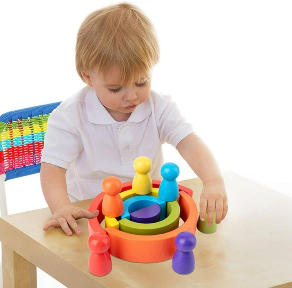 Tomaibaby Wooden Rainbow Stacking Toy With Little People Color And Shape Matching Building Blocks Montessori Educational Toys For Kids Baby Toddlers Baby Toddler Toys Early Development Activity Toys Umoonproductions Com